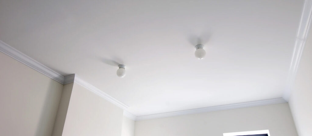 A flat ceiling is the ideal choice for minimalistic and modern interiors. With a completely smooth surface and no texture, this modern ceiling finish visually increases the space, providing an elegant, clean, and refined look. Perfect for contemporary home designs, a flat ceiling ensures every detail of your interior design stands out.